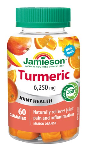 Kurkumát tartalmazó gumicukorkák mangó- és narancs ízesítésben. A kurkuma elősegíti az ízületi gyulladás okozta fájdalom enyhítését természetes formában. Antioxidáns hatású, csökkenti a gyomorsavtermelést, gátolja a baktériumok (pl. Helicobacter pylori) szaporodását a gyomorban, valamint hozzájárul a koleszterinszint csökkentéséhez. Nem tartalmaz sót (NaCl), glutént, laktózt, mesterséges színezéket, mesterséges aromát és tartósítószert.